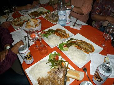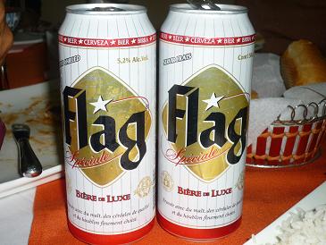 また、国民のほとんどがイスラム教徒であるにもかかわらず、食料品店では普通にビールやウイスキーが売られていて、中東やパキスタンとは異なっています。早速ビール(ちゃんと冷蔵庫から出してくれ、冷えていた!)を買い込んで、夕食の時にのどを潤しました。ビールは、西アフリカで広く飲まれている「FLAG」というブランドです(写真)。