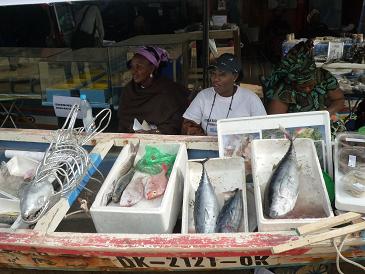 ATTACの隣りは、中国の対外交流協会のブースでしたが、初日の午前中だけでメンバーがいなくなってしまい、アフリカのおばちゃんたちの休憩場所に「占領」されてしまっていました。中には、生魚を売っているブースもあり、びっくり!(写真)